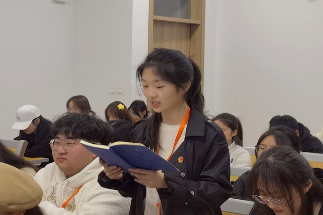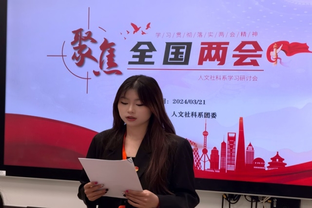 随后,系团委干事就两会精神的学习心得进行交流分享。孙熙瑶同学表示,学习了全国两会精神之后受益匪浅,作为新时代的新青年,应时刻关注着国家的最新动向,更加明确了奋斗的目标,前进的方向,立志要为祖国的建设添砖加瓦,跟着祖国发展的步伐,谱写出最绚烂的青春华章。