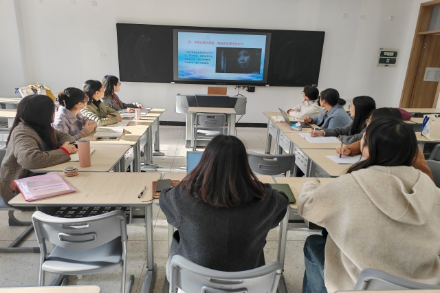 首先,陈璐璐老师围绕四个方面展开:聚焦社会热点,力求实现知行合一;挖掘教学资源,打造特色精品课程;提升教学能力,塑造高素质教师队伍;开展实践大课堂,增强思政课程感染力。结合课程教学和实践活动,陈璐璐老师图文并茂地讲述了融入路径,增强了思政课程的感染力。