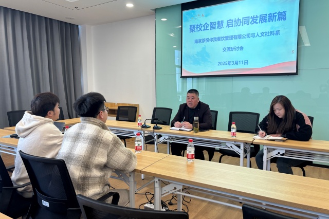2025年3月11日,南京茶悦你我餐饮管理有限公司代表团一行莅临开元人文社科系,就深化校企合作、共商本年度及明年合作计划展开深入交流与探讨。此次交流活动在人文社科系702会议室举行,为双方进一步的合作奠定了坚实基础。