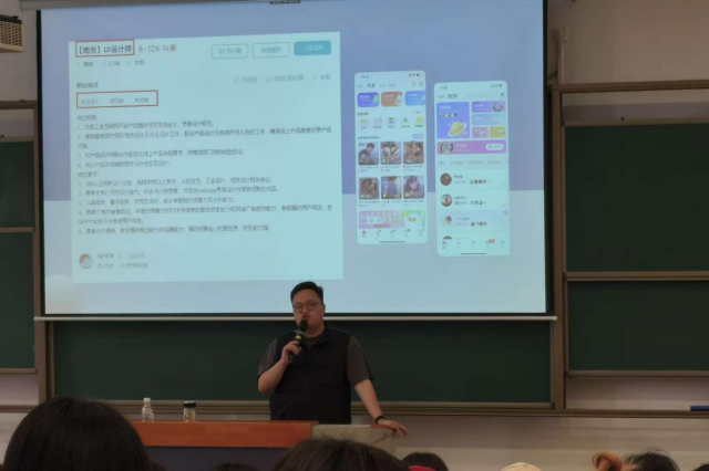 在核心内容分享环节,顾老师围绕数字创意行业的影视制作、UI设计、数字媒体、动画创作等细分领域,系统解析了不同岗位所需的“硬技能工具”与“软创作思维”,通过UE虚拟拍摄技术案例演示,让同学们直观感受行业前沿技术的应用场景。针对学子求职与创业需求,他还详细拆解了优质简历与作品集的构建逻辑,强调“教育背景+实践成果+专业技能+综合素养”的全方位展示思路,并用学生真实案例辅助讲解,为同学们提供了可操作的自我提升方案。整场讲座既有行业宏观趋势分析,又有具体实操指导,内容翔实、干货满满,赢得了同学们的热烈反响。