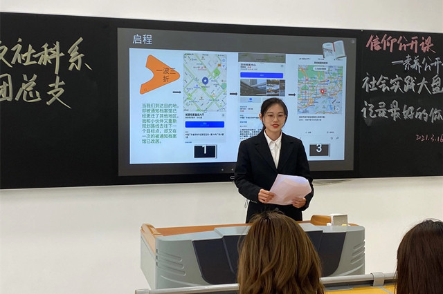 新学期、新环境、新目标、新挑战。为了深入学习习近平新时代中国特色社会主义思想,深化爱国主义精神,促进人文社科系团员青年通过社会实践活动了解社会、认识国情、奉献社会。2021年3月16日下午,人文社科系团总支在高淳新校区博学楼301、303组织全体团员青年开展“社会实践大盘点,记录最好的你们”主题素养公开课。公开课通过线上线下两种方式进行,由人文社科系团总支副书记范灿主持。