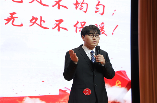 材料评述部分,选手们从校团委提供的十道题库中随机抽题,现场即兴评述。参赛选手们用简洁凝练的语言对党的十九届六中全会精神、河南水灾一方有难八方支援、学习袁隆平精神、学习抗“疫”精神等方面的具体分析,向评委老师以及在场师生生动形象的表述了自己的理解与看法。