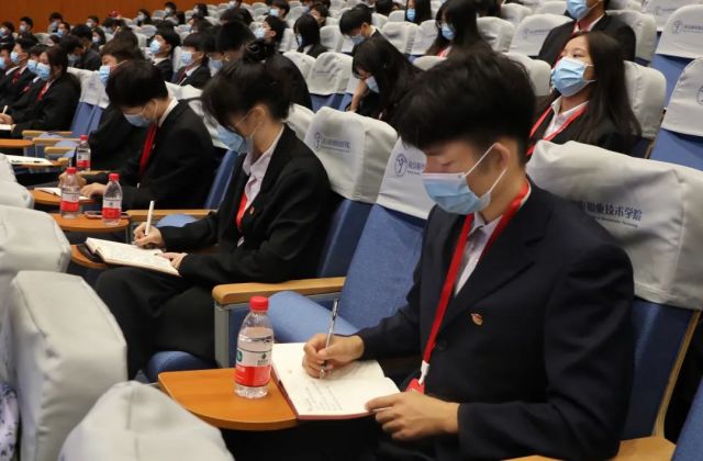 我校组织师生在青春剧场集体收听收看党的二十大开幕会,学院党委委员、副院长郭朝辉以及驻校学工系统同志参加了开幕会。同学们个个热情高涨,以最饱满的精神状态迎接党的二十大胜利召开。放眼望去,同学们庄重严肃,挺直腰板认真学习着开幕会精神。