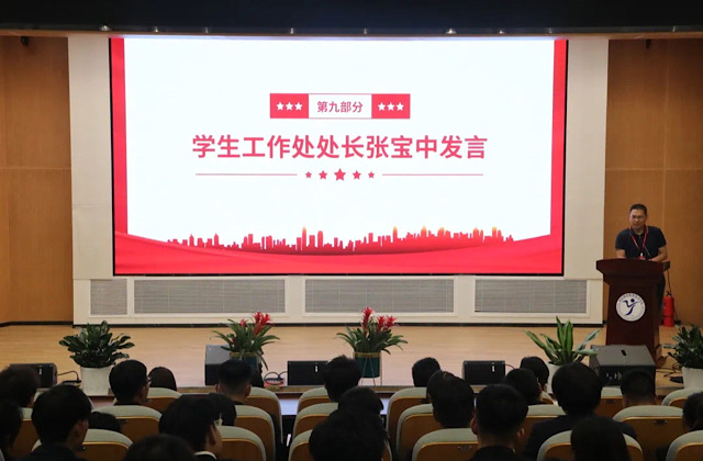 学生工作处处长张宝中为21级学生干部颁发了聘书,感谢每个人对学院的发展做出的无私贡献,肯定了大家取得的成果。随后张处长对即将上任的新一届学生骨干表示祝贺并提出要求:一是要心怀感恩,学生干部要有强烈的使命感和责任感,以感恩的心态去为学校做事,只有把感恩的心作为为人处世的一项基本品质,才能更好地做一名学生干部;二是要坚定理想信念,在磨难中锻炼,在锻炼中成长,做有思想、有理想、有内涵、有担当的新时代青年;三是要阳光清澈、有情有义,树立好形象、争做好榜样,永远清澈纯粹,永远充满朝气。