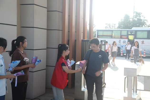 9月10日清晨,当阳光照向开元校门,参与活动的同学在校门口等待老师的到来,为老师们送上了手工制作的花束并祝福老师教师节快乐。一支精美的花束,一句温馨的话语,让老师们感受到学生们的感激和爱戴之情,体会到作为一名教师的幸福和快乐。这束束花朵代表着学生们对老师的尊重和崇敬,也展现出了学生们在老师的教导下茁壮成长的喜悦和自豪。