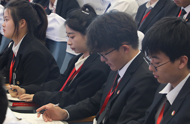 时佳同学作为此次学干培训的新生代表发言。她表示,作为新时代青年和学生干部,应该胸怀使命,坚定理想信念;精进学业,坚持学生本色;倾注热爱,坚守赤诚初心。学生干部们要秉承“知行合一,自强不息”的校训精神,为同学服务、为学院服务,以挑战自我、磨炼自我的信念脚踏实地地做好自己的本职工作,为构建和谐文明的校园书写新的篇章。