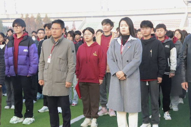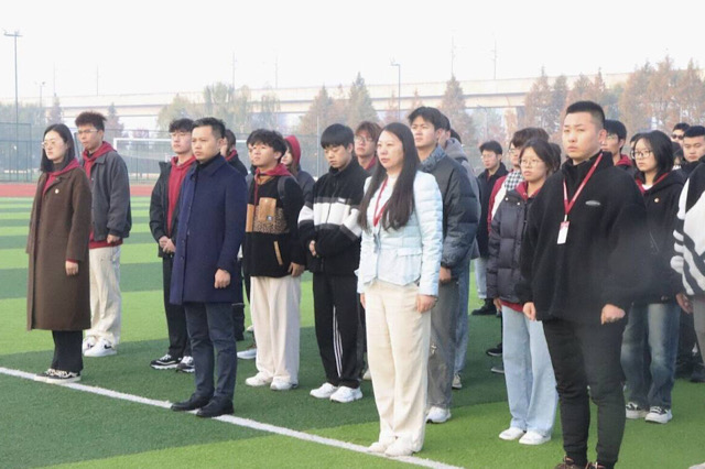 为进一步加强爱国主义教育,引导学生以更加饱满的精神状态践行党的二十大精神,坚定理想信念,报效祖国,我校于11月27日7点在操场举办升旗仪式。学工处处长张宝中,校团委副书记孙晓燕,信息工程系党支部书记胡枫,机械工程系党支部副书记李杰,自动化工程系党支部副书记高水冕,人文社科系党支部副书记叶绘,电子工程系党支部副书记陈雪,国旗班指导老师郝麒,青马班班主任周笛及全体学员和辅导员代表参加升旗仪式。