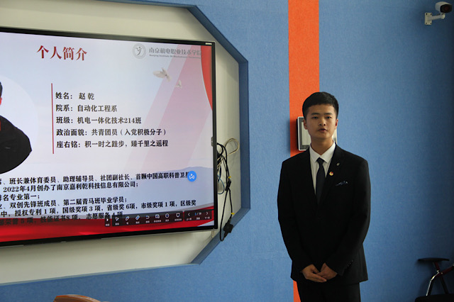 赵乾,共青团员,开元机电一体化技术214班学生,曾担任自动化工程系学生会主席。在校期间分别获得“国家奖学金”和“国家励志奖学金”各1次,曾获得2023年度江苏省“三好学生”、第十八届“挑战杯”江苏省二等奖、江苏省职业院校创新创业大赛三等奖2次、第八届江苏省“互联网+”大学生创新创业大赛三等奖等荣誉。作为一名学生骨干,积极参加志愿服务及公益活动,累计志愿服务时长500小时,曾获得徐州市“核酸检测优秀志愿者”、学校“寒暑假社会实践优秀个人”各1次。