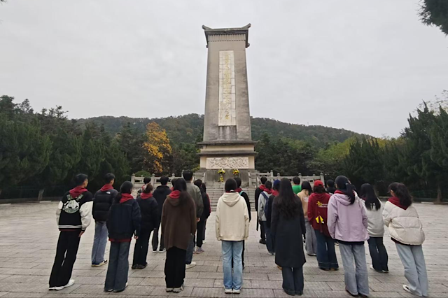 为传承红色基因,赓续红色血脉,2024年11月19日下午,开元第五期青马班的同学们奔赴溧水,展开了一场追寻红色记忆的深刻之旅。活动首站来到回峰山烈士纪念碑,祭奠活动在回峰山脚下隆重举行。