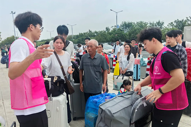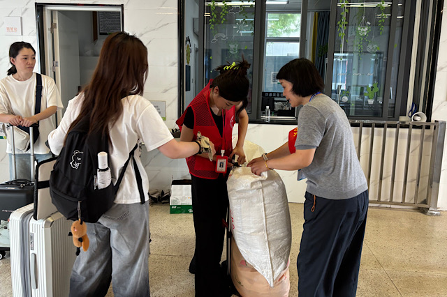 在南京汽车客运站、南京火车站、南京南站3个关键站点,志愿者们早早到位。手举“开元新生接站点”的标牌,目光不停搜寻着拖着行李箱、带着期待与忐忑的新生及家长。看到目标身影,立刻快步上前,笑着接过沉重的行李:“同学是来报到的吧?行李我来帮你拿,跟我去乘车点!”遇到对路线有疑问的家长,他们会拿出手机调出校园地图,逐一向家长介绍学校的宿舍区、教学区和生活区分布;碰到行李较多的新生,几人默契配合,一人拎包、一人拖箱,合力将行李搬上迎新专车。“叔叔阿姨放心,我们会把孩子安全送到学校!”一句句贴心的承诺,一次次主动的帮扶,瞬间驱散了新生初来乍到的陌生感,让旅途的疲惫化为满心的温暖。