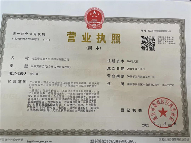 2020年12月—至今:南京峰宏商务信息咨询有限公司 董事长;