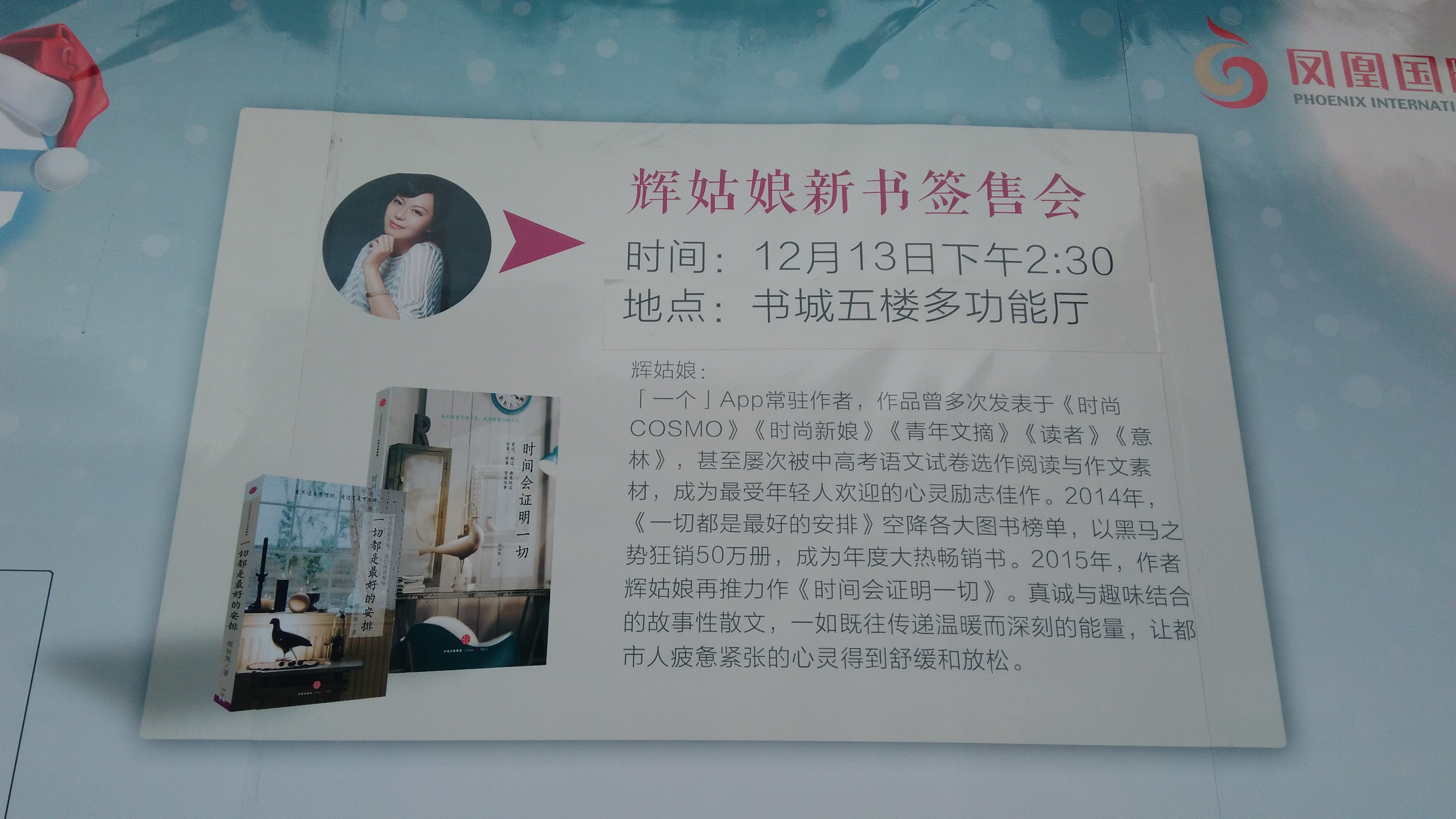 辉姑娘,原名吕辉,80后女作家,曾著有《一切都是最好的安排》。12月13日,她携新书《时间会证明一切》来到凤凰书城,举行“时间会证明一切-辉姑娘新书见面会”。本次见面会由凤凰书城、学院图书馆与信息工程系共同承办,来自信息系学生会、学院读者协会、青藤文苑、主持人协会的四十多位同学到现场观摩。见面会由南京电视台青春主播于晚梦、我院15数控董恒同学共同主持。
