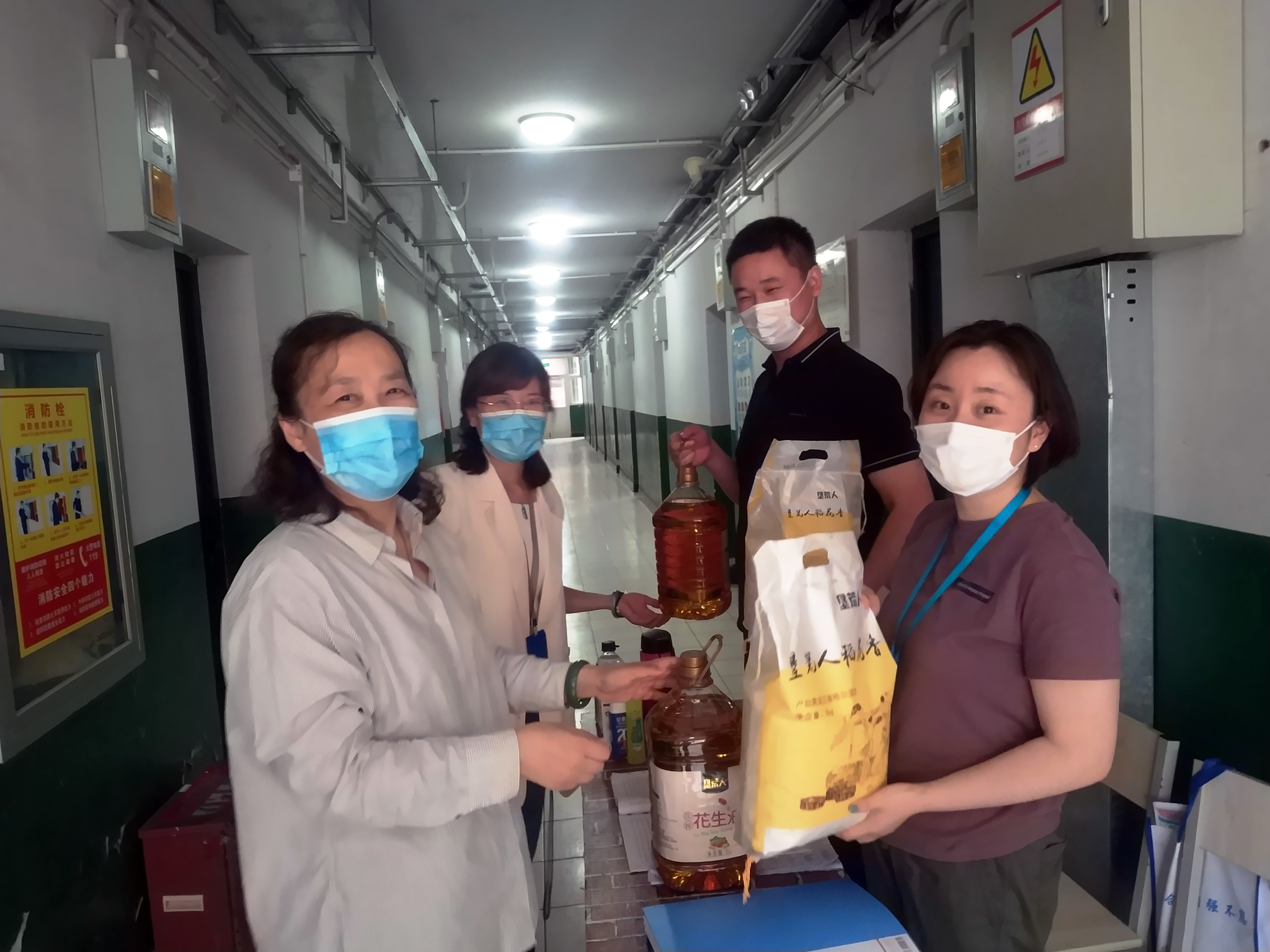 慰问中,王主任和胡书记代表系部、学院给每一位教职工送去了大米和花生油等物品,对大家这段时间的舍小家、为大家,忠于职守,为全系学生的健康安全默默付出表示感谢。