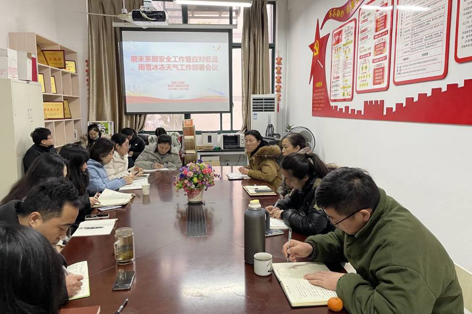 据气象部门预测,受强冷空气影响,30日、31日最低气温可达-5℃~-7℃,有严重冰冻。为防范灾害性天气影响,保障学院师生的人身财产安全,确保我院校园安全工作稳定,学院下发了《关于做好低温雨雪冰冻天气校园安全工作的紧急通知》。12月29日,信息工程系在系部会议室召开防雪破冰行动动员会,全系老师参加本次会议。