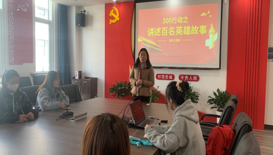 “300行动”之讲述百名英雄故事活动的动员,让师生们深切感受到没有革命先烈的流血牺牲,就没有我们今天的幸福生活。2021年11月9日团总支全体学生干部在育德楼311开展了“300行动”之讲述百名英雄故事活动,此次会议由系书记吴伟萍老师主持。