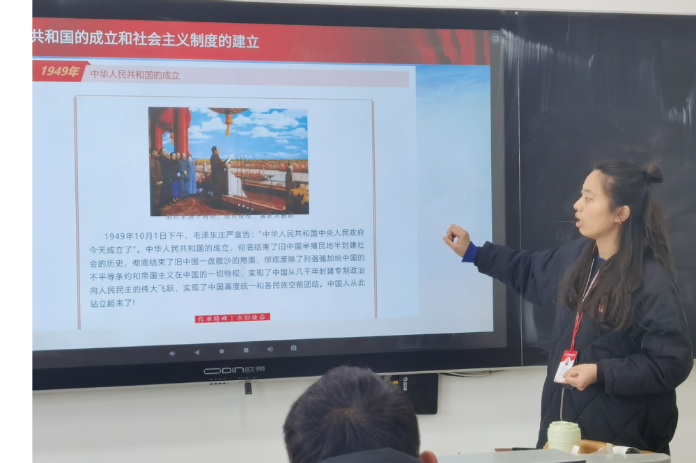 首先,刘娴同志分享了中华人民共和国的成立和社会主义制度的建立的主要内容,学习主要围绕中华人民共和国的成立、抗美援朝战争和土地制度改革、国民经济的恢复、党在过渡时期的总路线以及社会主义制度的建立等五个方面讲述了中华人民共和国成立到社会主义制度建立的艰辛历程。虽然中华人民共和国的成立彻底结束了旧中国半殖民地半封建社会的历史和旧中国一盘散沙的局面,实现了国家高度统一和各民族空前团结,但同时在军事、经济、国际和党自身的队伍建设上存在很多亟待解决的困难,面临着很多严峻考验,面对复杂形势和种种考验,我们党采取了一系列积极稳健的政治措施,领导全国各族人民满怀信心地迎接挑战,充分展示了我们中国共产党人的钢铁意志。