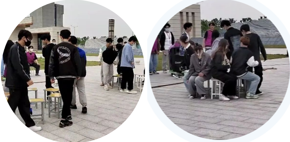 “加油!加油!”在活动现场,加油声、喝彩声此起彼伏。抢凳子活动项目,既考验了参与者的动作能力,又让同学乐开怀。同学们被活动过程中有趣的场面逗得哈哈大笑,整个活动现场成了欢乐的海洋。