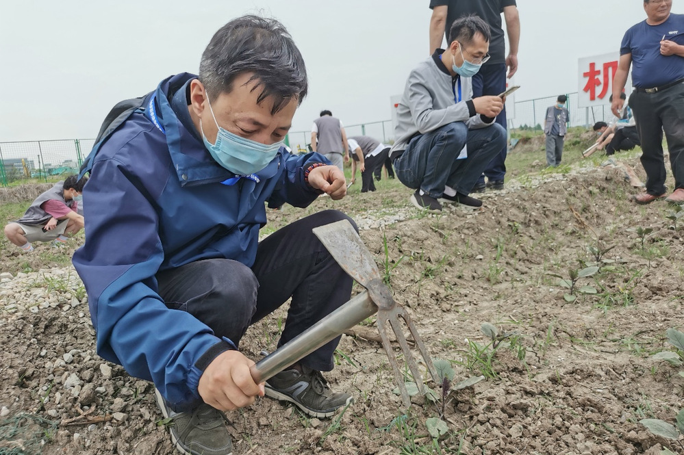 揭牌仪式结束后,信息工程系党支部的老师们参加了劳动实践活动,实践基地的蔬菜园里,前期已经播种下了茄子、黄瓜等蔬菜的种子,一眼看去已经初泛青绿,长势喜人,但也夹杂着一些野草,一声令下,同志们干劲十足,撸起袖子下地干活,除草的除草、翻地的翻地,活动现场呈现出热火朝天的劳动景象。