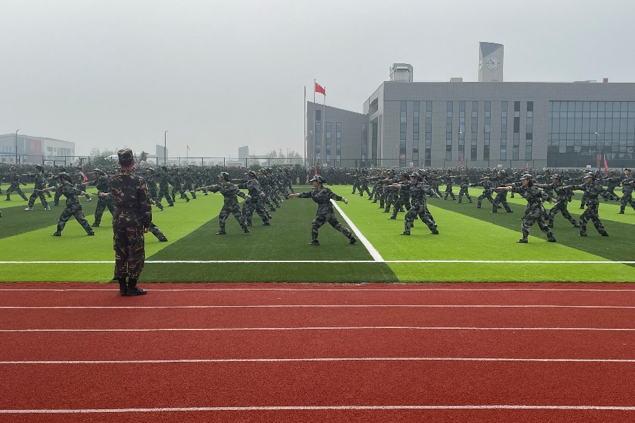 军旗猎猎迎风舞,学子气势贯长虹。军训不仅仅是对学生身体素质的考验,更是对胸中意志的磨练。虽天气已至秋季,但高温依旧不散,炎炎烈日也抵挡不住他们训练的热情,没有一位学生喊苦喊累。在教官们严格要求下,全体参训学生严格要求自己,学习每一个动作,经受住了考验和锻炼。