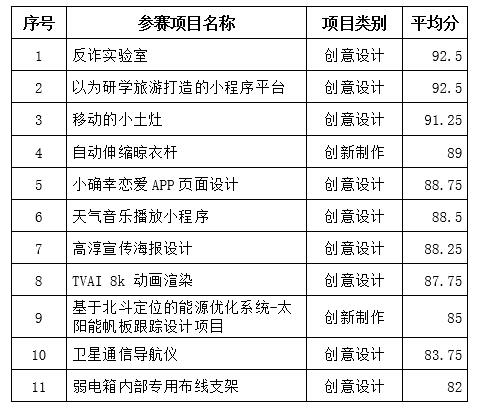 三创大赛初赛结果