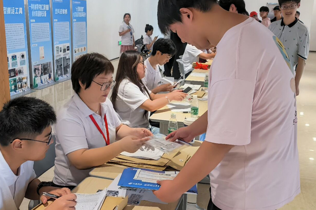 同时,结合学校打造航天特色校以及系部卫星通信与导航的专业特色,我们在新生报到现场邀请新生和家长参观了学校的“航天科技展”,以此激发学生未来专业学习的探究精神。