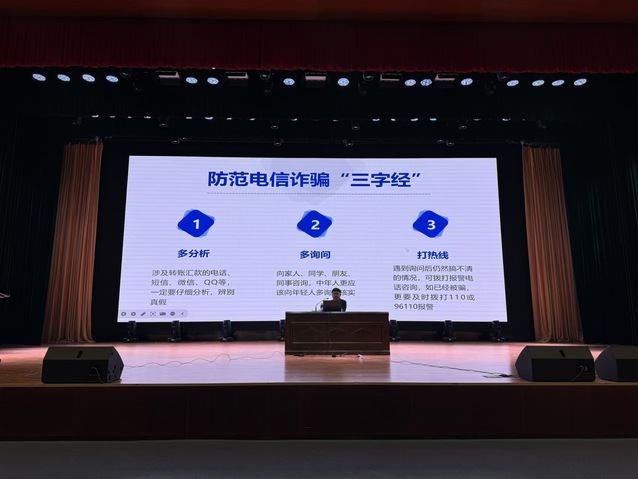 系部还邀请了反诈宣讲团徐柯老师,他强调在当前网络环境下,电信诈骗的严峻形势,提醒新生们要时刻保持警惕,防范电信诈骗的侵害。胡枫书记通过生动的案例、翔实的数据于新生们互动向新生们揭示了电信诈骗的种种套路和手法,并传授了实用的防范技巧和应对措施。新生们听得津津有味,纷纷表示受益匪浅。