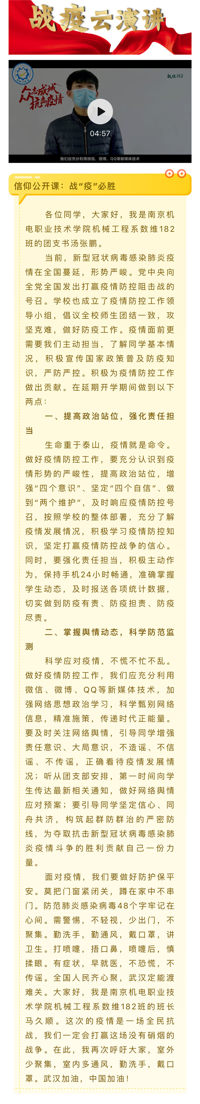 【信仰公开课】机械工程系团总支|战“疫”必胜