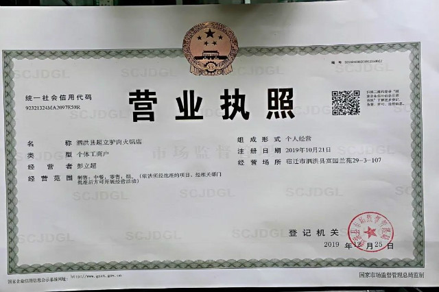 2019年11月—至今:泗洪县超立驴肉火锅店 总经理