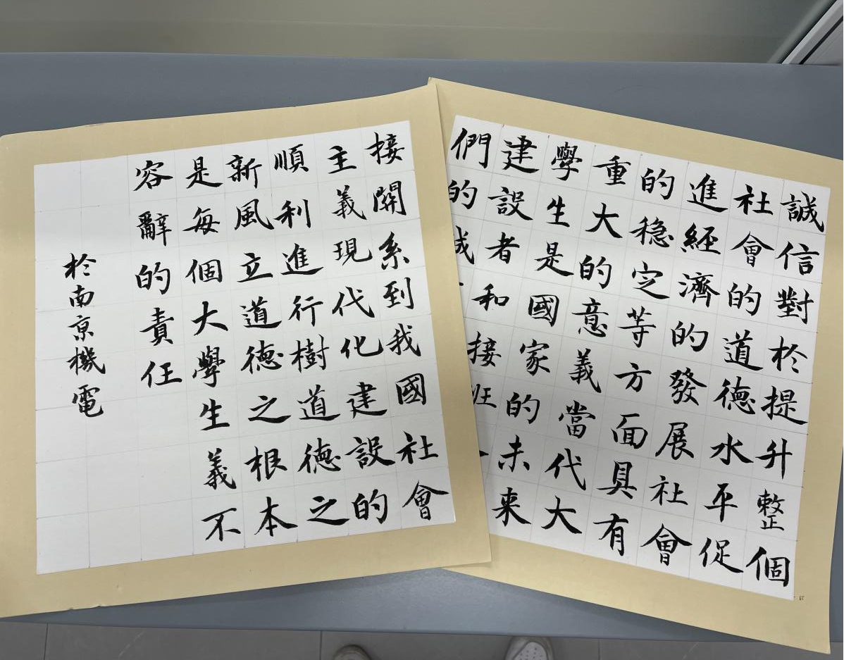 通过系部各位辅导员老师的评选,最终机电195班段绍恒、机电202杨昊男的作品从众多的书法作品当中脱颖而出,推送到学院参加评比。