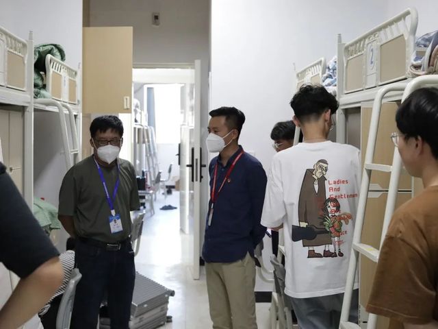“吃饭没有?在学校吃住习惯吗?有没有什么困难?”走访过程中,每到一个宿舍,老师们都会向新生们嘘寒问暖,表达自己亲切的问候,与新生们亲切交流,细心询问新生入校后的生活状况,认真倾听新生的心声,为新生答疑解惑。与此同时,老师们还询问新生一些关于宿舍环境以及基础设施的问题,各个宿舍的新生纷纷流露出对新宿舍的满意之情。部分新生表示,新宿舍配套设施一应俱全,学校对新生的照顾无微不至。