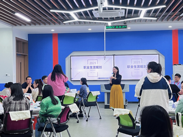 为深入学习贯彻习近平新时代中国特色社会主义思想和党的二十大精神,进一步加强我校辅导员队伍职业化、专业化建设,提高辅导员的生涯规划与就业指导能力,5月27日至28日,学生工作处、人事处组织开展“TTT高校职业规划教学师资认证”辅导员专项培训。本次培训由致远教育资深职业规划培训师陈璐担任主讲老师,各系部书记、全体专职辅导员、学生工作处老师参加培训。