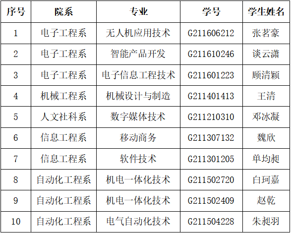 根据《省教育厅关于做好2023 年普通高校国家奖学金有关工作的通知》(苏教助函〔2023〕15 号)、《教育部 财政部关于印发<本专科生国家奖学金评审办法>的通知》(教财函〔2019〕105号)、《江苏省学生资助资金管理办法》、《江苏省学生资助管理实施细则》文件精神,我校认真落实国家奖学金评审相关细则,各系部通过召开系部国家奖学金评审小组会议,认真贯彻落实国家奖学金评定要求,本着公平、公正、公开的原则,经学生个人申报、辅导员推荐、上报系部评议小组,系部对申请学生各项指标、材料进行初审并提出意见,经系部同意,公示后,正式上报学校学生资助管理中心。经学校学生资助管理中心复审,逐一核实各系部提交国家奖学金候选人材料,核实无误后,上报学校国家奖学金评审领导小组,经学校国家奖学金评审领导小组同意,于2023年10月18日组织召开学校国家奖学金评审会。拟确定以下10位同学为开元2022-2023学年国家奖学金获得者。
