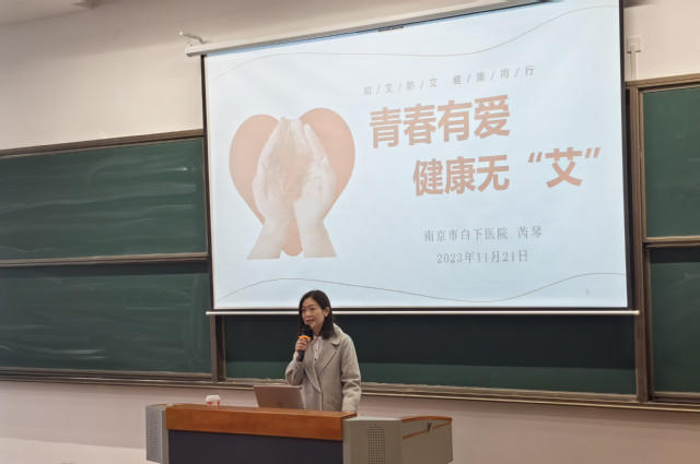 在世界第36个世界艾滋病日来临之际,为普及艾滋病防治知识,增强大学生预防艾滋病及自我保护意识,11月21日下午,校后勤处、学工处联合校医务室在善学楼开展了以“青春有爱 健康无‘艾’”为主题的艾滋病防治宣传讲座。讲座由白下医院芮琴主任主讲,200余名学生参加。
