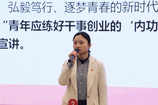 理论宣讲环节选取了当前热点议题,考察辅导员对大学生开展思想政治教育过程中的理论宣传阐释能力。用小角度讲清大道理,用身边案例讲好育人故事,通过讲政策、讲理论、讲案例的方式,着重考察辅导员理论宣讲的政治性、思想性、理论性、政策性及导向性。辅导员在5分钟内围绕“传承优秀传统文化,建设中华民族现代文明”“新时代中国青年要让青春在实践中绽放”等主题开展了主题鲜明、思想深刻、内容丰富的理论宣讲。