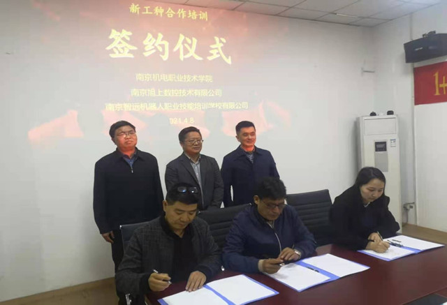 2021年4月8日下午,开元与南京智远机器人职业技能培训学校有限公司、南京旭上数控有限公司签订新工种开发合作协议。学校党委书记周庆礼,智能制造学院执行院长潘理平、南京智远机器人有限公司所长骆敏舟、南京旭上有限公司总经理吴乐平参加本次活动。