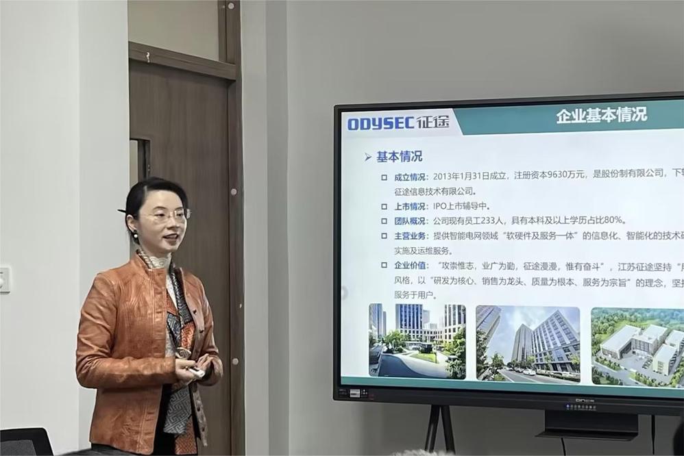 孙玉林一行充分肯定了学院在职业教育发展、学生培养、校园环境打造、实训室建设等方面所取得的成绩,并向学院介绍了江苏征途技术股份有限公司的发展概况、主营业务,主要的技术产品以及对高职院校学生的能力需求和职业晋升体系。他们表示,智能电网发展势头良好,对供用电技术专业毕业生需求量大。同时,公司非常重视人才培养和储备,希望能与开元建立稳定的长效合作机制,携手培养面向新型电力系统的高素质人才。