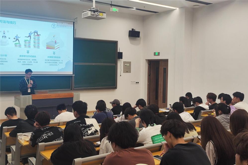 蔡兴杰给同学们进行分享“如何让自己变得更优秀”。他以优秀的定义与标准开篇,鼓励大家提升知识与技能、培养良好品质与习惯、增强心理素质与抗压能力、拓展人际关系与社交能力、持续改进与自我超越。步步深入,引导同学们成为更优秀的自己。