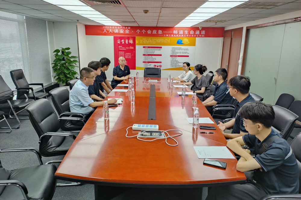 上海三菱电梯有限公司江苏分公司蒋总、秦教务长、实习生代表和系部访企教师进行了座谈交流。蒋总对学校学生的表现给予了充分肯定,表示实习生都虚心好学、勤勉踏实,有着较强动手能力,大多都能保质保量完成师傅交代的任务。
