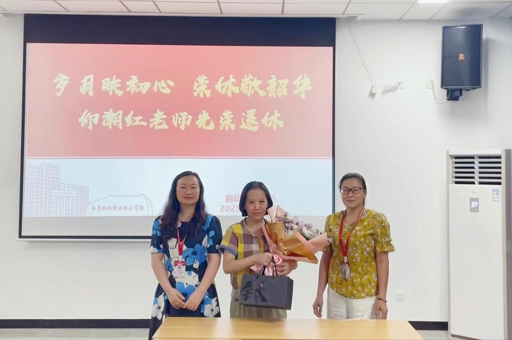 此次荣休仪式不仅是对仰潮红老师教育生涯的致敬,更成为自动化工程系弘扬尊师重教传统、加强师德师风建设的重要契机。通过荣休仪式,进一步传递学校和系部对教职工的人文关怀,有效增强了教师群体的职业荣誉感与归属感,同时激励全体教职工以仰潮红老师为榜样,坚守教育初心、牢记育人使命,为培养担当民族复兴大任的时代新人不懈奋斗。