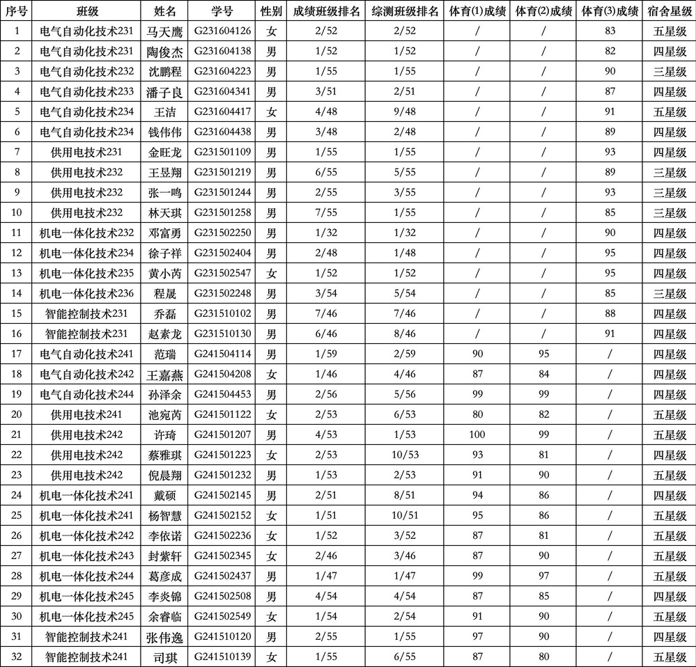 根据《开元校级三好学生、优秀学生干部、优秀毕业生、先进班集体评定办法》和《关于评选2024-2025学年三好学生、优秀学生干部和先进班集体的通知》等文件精神,经个人申请、班级评议、院系审核,拟推荐马天鹰等32名同学申报校级“三好学生”,陈思纤等14名同学申报校级“优秀学生干部”。