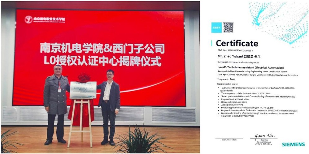 2024年3月28日,开元举行“西门子-南京机电L0授权认证中心签约揭牌仪式暨西门子L0教师认证结业仪式”,江苏省首家西门子L0授权认证中心落户学校。 至今已完成开元、江苏城市职业学院等专科院校的培训工作,有效解决了地方智能制造企业对高技能人才的需求问题,受到广泛好评。