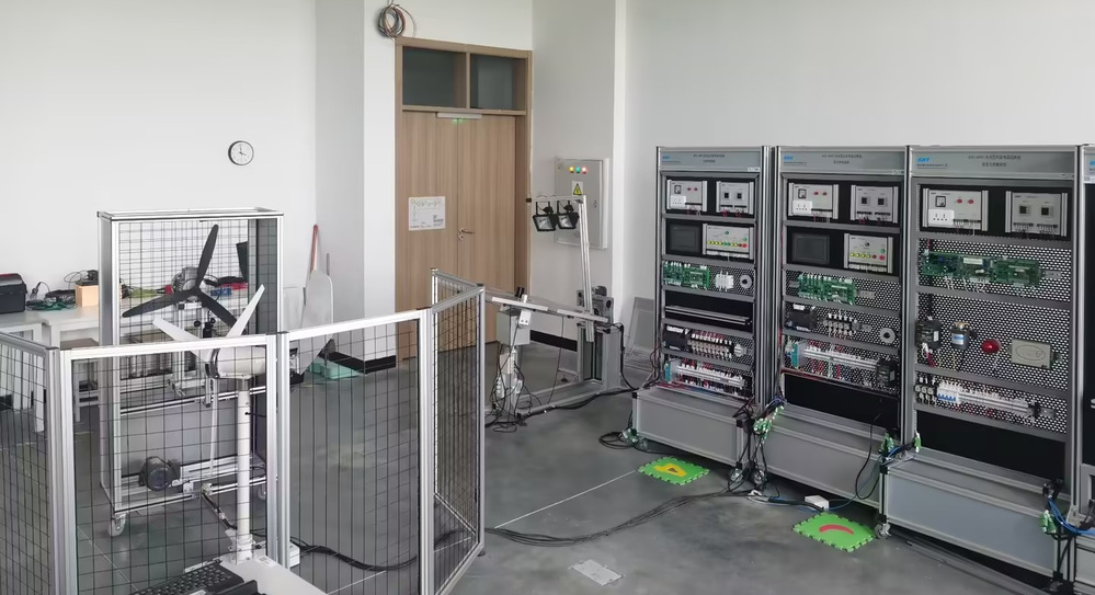 (3)新能源创新实训室。该实训室可实现风光互补发电系统的安装与调试训练,使学生对风力发电和光伏发电有全面的认识,同时提供活动空间供新能源社团组织创新实践活动,丰富学生的课余生活。